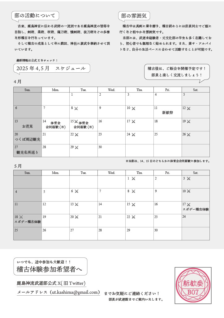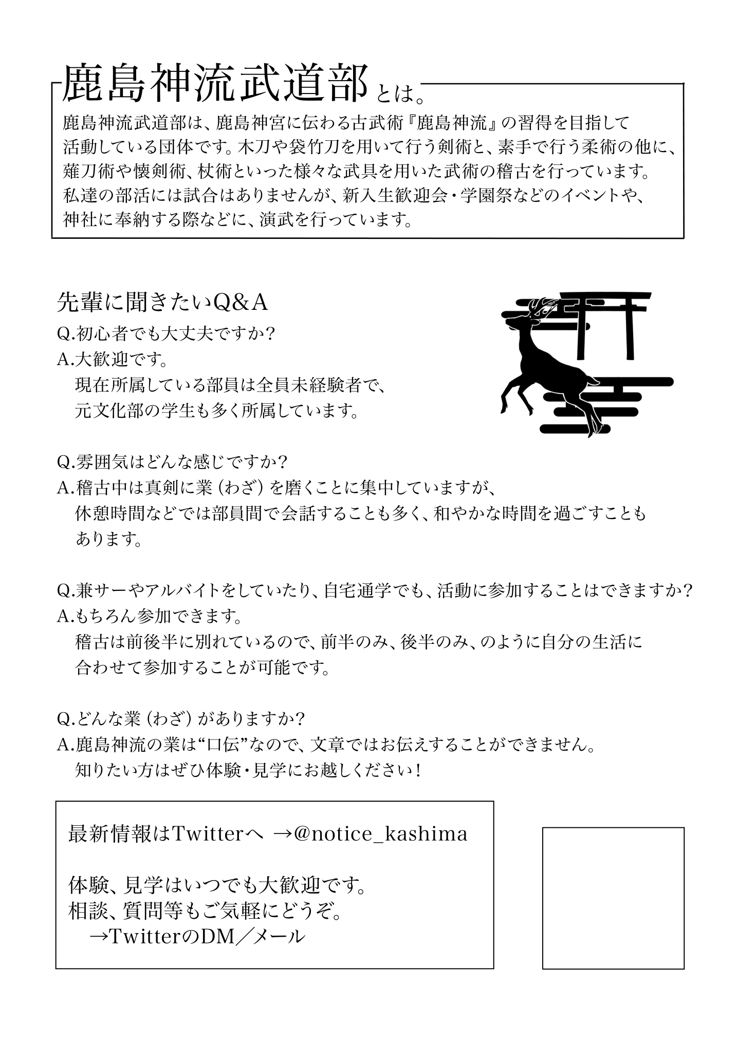 鹿島神流武道部に興味を持たれた方へ:当部活へのお問い合わせはこちらへ。