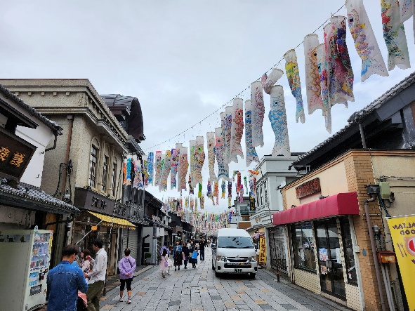 午後は、JR 川越線に乗って埼玉の小江戸・川越へ。昼食で訪れたお店の定食のボリュームに少し戸惑いましたが、お腹いっぱいになりながら完食。時期的に鯉のぼりが飾られていた大正浪漫夢通りや蔵造りの町並みを通りつつ、時の鐘や菓子屋横丁を訪問。川越の蔵造りの町並みは重要伝統的建造物群保存地区に指定されていて、近代洋風建築なども含めた建造物がつくる歴史的景観を保存するための取り組みがしっかりなされています。