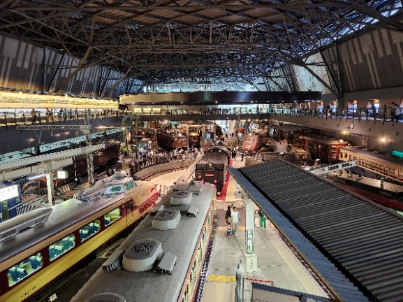 さて、旅のメインの鉄道博物館に到着。エントランスの目の前には、昭和平成に90回以上お召列車を牽引した、日本の電気機関車を代表する「EF58形電気機関車」がお出迎え。1階の車両ステーションには36両もの車両が展示されていて圧巻でした……