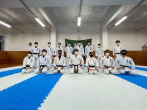 今年度は新型コロナウイルスの影響で多くの大会が中止になってしまうという厳しい年でした。そのような状況でもなんとか部としてできる事はないか考え、zoomを使った週1回のオンラインミーティングを導入しました。オンラインミーティングでは主に個々人でどういった目標を持って稽古を行っていくかを話し合い、部活のモチベーションの維持に努めました。来年度は今年度の経験を活かしつつ空手ができることに感謝をしながら日々の稽古に励み、大会で良い成績を収められるように精進していきます。
