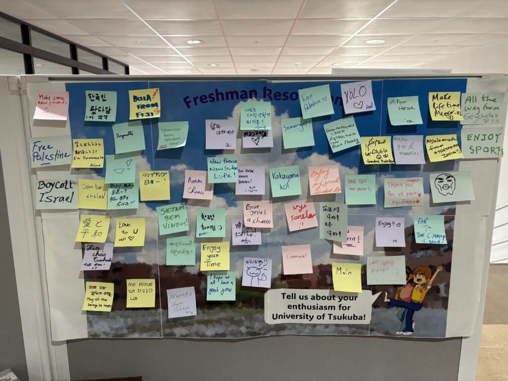 また、今年は来場者参加型の新企画「Freshman Resolution」を実施し、筑波大学での新生活に向けた抱負を自由に書いていただきました。一人ひとりの目標や意気込みからは、これから始まる大学生活への期待が感じられました。