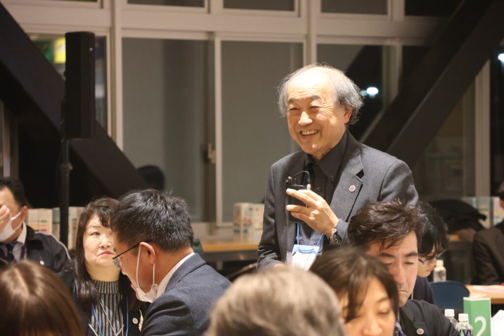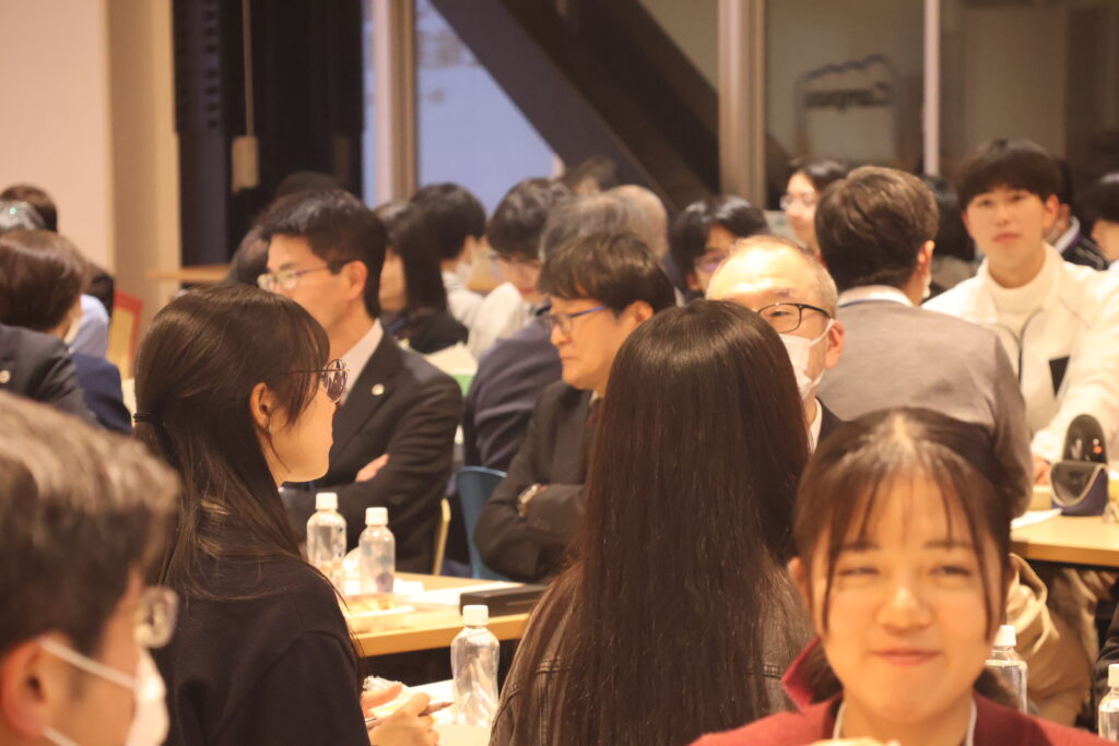 懇談会には、千葉 親文 副学長(学生担当)や西尾 チヅル 副学長(企画評価・広報担当)、竹中 佳彦 副学長(教育担当)、唐木 清志 氏(学生生活支援室長)など多数の教職員の方々にご参加いただきました。全代会側からは、𠮷川 椛 議長(工学システム学類3年)をはじめ、各委員長を含む全代会の構成員が出席しました。